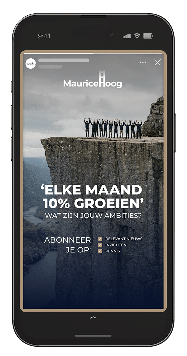 We hebben de positionering, propositie en doelgroepen bepaald en zijn vanuit daar gaan bouwen aan het nieuwe merk van MauriceHoog. Bij het scherpstellen van de merkstrategie hebben we samengewerkt met Rafael van N8W8, een relatie van Maurice. Samen hebben we de focus verlegd naar ondernemers die willen winnen. Oftewel, “hier wil je als ambitieuze ondernemer bij horen”. Maar… het vergt wel commitment en MauriceHoog businesscoaching is dus niet voor iedereen weggelegd. Vanuit de merkstrategie zijn we de branding en website gaan creëren waarin Maurice centraal staat.